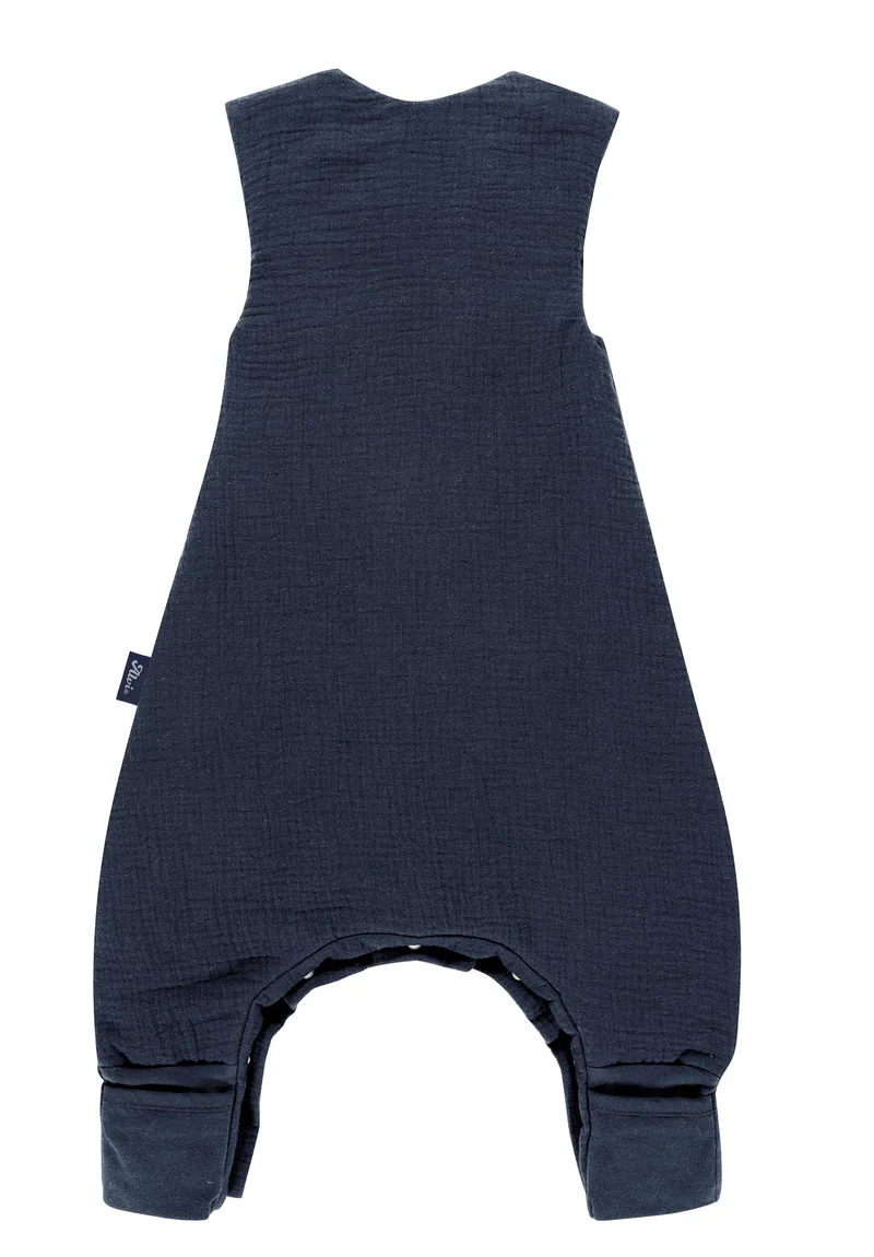 Der Alvi® Ganzjahresschlafsack mit Beinen Mull | Skay Way bietet aktiven Babys mit einem TOG-Wert von 2.0 genau die richtige Mischung aus Komfort und Bewegungsfreiheit. Klappbare Bündchen halten die Füsschen warm, während das atmungsaktive Material für ein angenehmes Schlafklima sorgt.