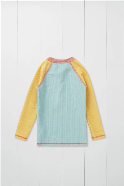 Unser langärmliges Badeshirt PISTACHIO ist im Sommer unverzichtbar für alle Aktivitäten im Wasser. Der pistaziengrüne, gerippte Stoff ist weich und sanft zur Kinderhaut und verfügt über Flachnähte für zusätzlichen Komfort.