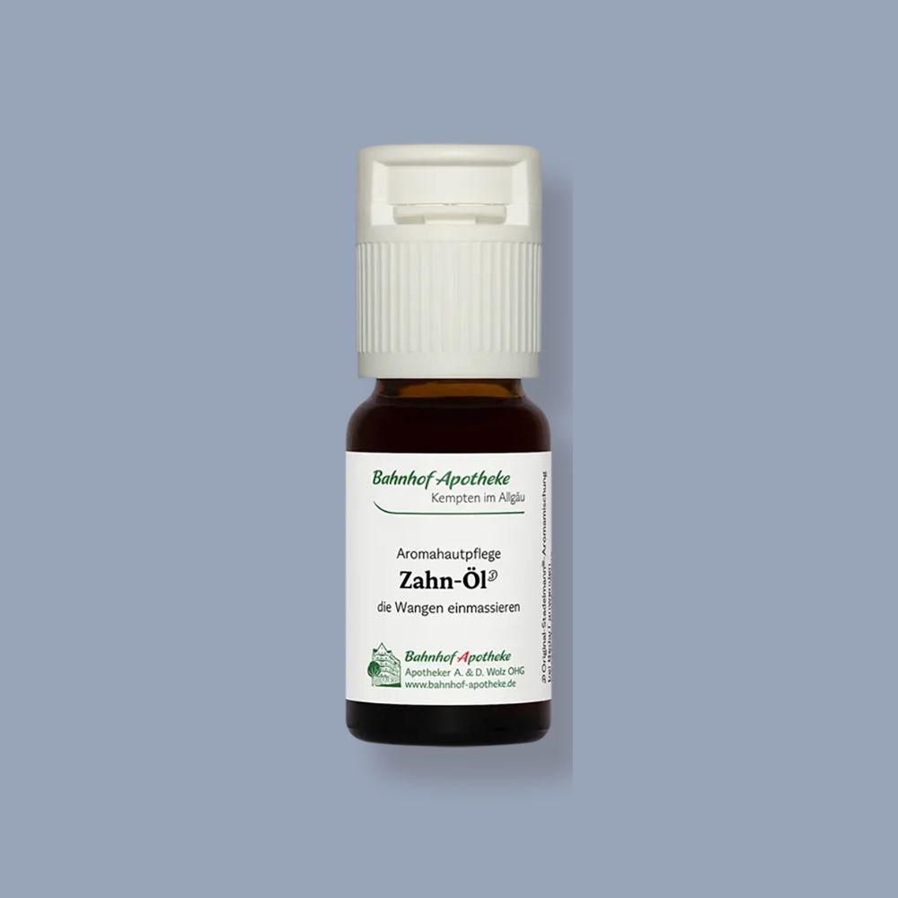 Zahnen ist anstrengend – für dein Kind und für dich. Das würzig-wärmende Bahnhof-Apotheke Zahn-öl (20ml) unterstützt beim Entspannen in der Zahnungszeit und kann auch den Zahnwechsel bei älteren Kindern begleiten. Sehr sparsam anwendbar, hebammenbewährt, hauseigene Herstellung in apothekengeprüfter Laborqualität.