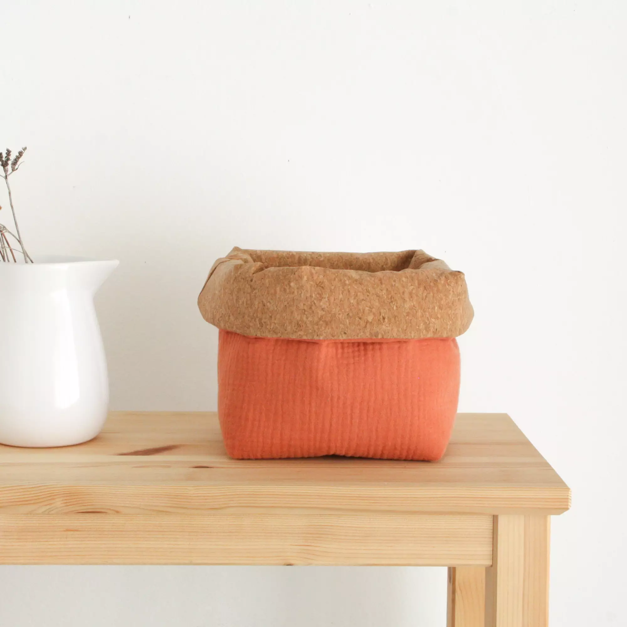 Der BIBAK Aufbewahrungskorb mit Kork | Terrakotta ist ein vielseitiger Ordnungshelfer für dein Zuhause. Gefertigt aus natürlichen Materialien, kombiniert sie Funktionalität mit einem zeitlosen Design.