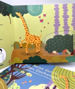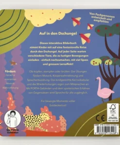 Dieses interaktive Bilderbuch nimmt Kinder mit auf eine fantasievolle Reise durch den Dschungel und lädt Kinder spielerisch dazu ein, in Bewegung zu kommen. Auf der Reise durch den Dschungel schlüpfen sie in die Rolle der Tiere und ahmen deren Bewegungen und Geräusche nach.