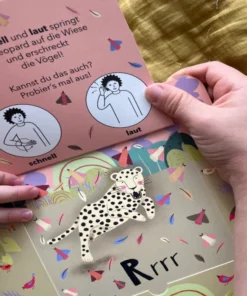 Ob hüpfen, stampfen oder brüllen: Die Übungen fördern Mund- und Grobmotorik, Körperwahrnehmung, Koordination, Gleichgewicht und Sprachentwicklung. Die Bewegungsübungen wurden spezifisch ausgewählt, um die motorische Entwicklung von Kindern bestmöglich zu fördern und zu unterstützen.