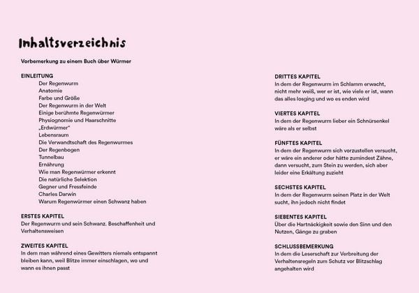 Ein humorvoll illustriertes Buch über Regenwürmer, Natur und die kleinen Wunder unter unseren Füssen. Mit viel Witz, spannenden Fakten und besonderen Bildern lädt Noemi Vola Kinder und Erwachsene zum Staunen, Schmunzeln und Entdecken ein.