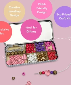 Das Cotton Twist Holzperlen Armband 5er Set Dose (3-8 J.) | Love & Heart ist perfekt für Drei- bis Achtjährige. Es enthält genug Perlen für die Herstellung von 5 Armbändern sowie eine Auswahl an unterschiedlichen Formperlen und farbenfrohen kugelförmigen Perlen. Kinder können die Armbänder zu ihren Lieblingsoutfits tragen, sie an Freunde verschenken, die sie lieben, oder sie mit Freunden auf einer Party basteln.