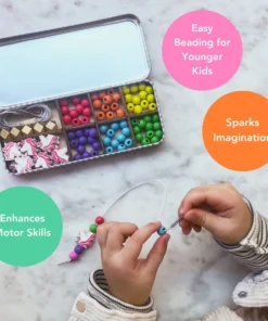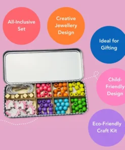 Das Cotton Twist Holzperlen Armband 5er Set Dose | Einhorn ist perfekt für Drei- bis Achtjährige. Es enthält genug Perlen für die Herstellung von 5 Armbändern sowie eine Auswahl an Einhorn-, goldenen geometrischen und farbenfrohen Kugelperlen. Kinder können die Armbänder zu ihren Lieblingsoutfits tragen, sie an Freunde verschenken, die sie lieben, oder sie mit Freunden auf einer Party basteln.