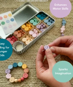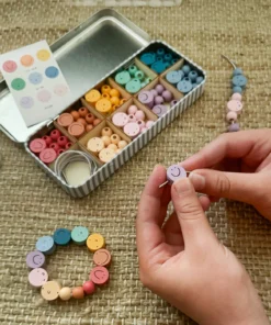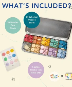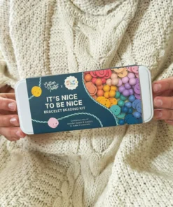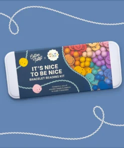 Das Cotton Twist Holzperlen Armband 5er Set Dose | Its nice to be nice ist ein bezauberndes Perlenset, das vom aufmunternden Aufdruck „It’s Nice to Be Nice“ von Abel and the Label inspiriert ist. Dieses mit Liebe gefertigte Set ist mehr als nur eine lustige Aktivität. Wir glauben, dass es wichtig ist, Kindern den Wert von Freundlichkeit beizubringen. Enthält genug Perlen für 5 wunderschöne Armbänder, eine Auswahl an Smileys und farbenfrohen Abstandsperlen!