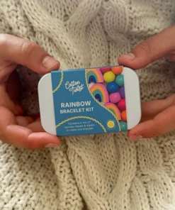 Das Cotton Twist Holzperlen Kreativ Set Armband Dose | REGENBOGEN ist eine wunderschöne Geschenkdose mit Gummiband und Perlen zur Herstellung eines Regenbogen-Armbands. Das Gummiband ist mit harten Enden ausgestattet, um kleinen Kindern das Perlensticken zu erleichtern. Dann sind nur noch Geduld und Präzision erforderlich, um dieses Stück zusammenzubauen.