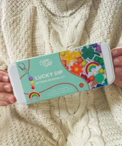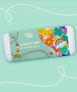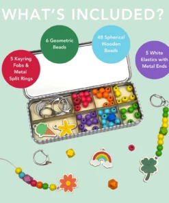 Das Cotton Twist Holzperlen Schlüsselanhänger Set Dose 5er | Lucky Dip zur Herstellung von Schlüsselanhängern ist eine wunderbare Aktivität ohne Plastik. Es bietet eine Auswahl an Holzanhängern, darunter Klee, Blume, Seestern, Eiscreme und einen Regenbogen, sodass Kinder 5 Schlüsselanhänger gestalten können. Das Set enthält auch regenbogenfarbene Abstandshalter und geometrische Perlen als Ergänzung zu den Prunkperlen für lebendige Accessoires!