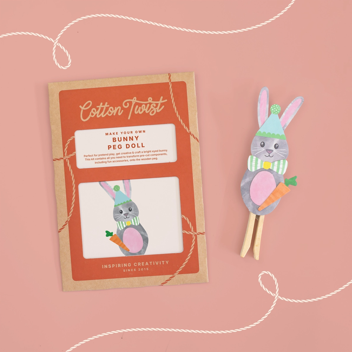 Cotton Twist Kreativ Bastelset (ab 3 J.) | Hasenklammer Puppe