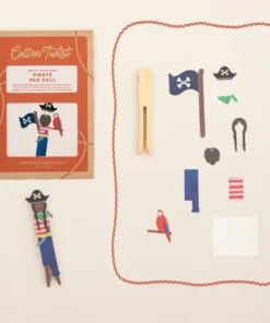 Mit diesem nachhaltigen Cotton Twist Kreativ Bastelset (ab 3 J.) PEG Doll | Pirat*in können Kinder ab 3 Jahren ihre eigene Piraten– oder Piratinnen Puppe gestalten. Das Set enthält eine Holzfigur sowie vorgestanzte Accessoires. Die Accessoires werden mit den beiliegenden Klebepunkten an der Holzfigur befestigt. Dieses Set fördert die Kreativität und Feinmotorik und eignet sich hervorragend als Weihnachtsgeschenk, Party-Mitgebsel oder für kreative Nachmittage.