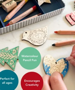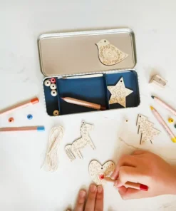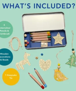 Mit diesem DIY-Bastelset können Kinder ab 4 Jahren ihre eigene Weihnachtsbaumdekoration gestalten. Das Set enthält fünf Holzanhänger zum Bemalen und Verzieren – perfekt, um deinem Baum eine persönliche, handgefertigte Note zu verleihen. Die enthaltenen Aquarellstifte und Holzperlen bieten unendliche Gestaltungsmöglichkeiten und verleihen jedem Anhänger einen charmanten Volkskunst-Look.