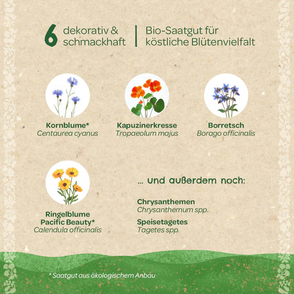 - BIO-Saatgut-Set mit 6 Sorten essbarer Blüten