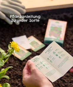 Das Set enthält samenfestes BIO-Saatgut und ist EU-BIO zertifiziert. Die Verpackung aus nachhaltigem Zuckerrohrpapier ist nicht nur optisch ansprechend, sondern auch praktisch zur Aufbewahrung des Saatguts.