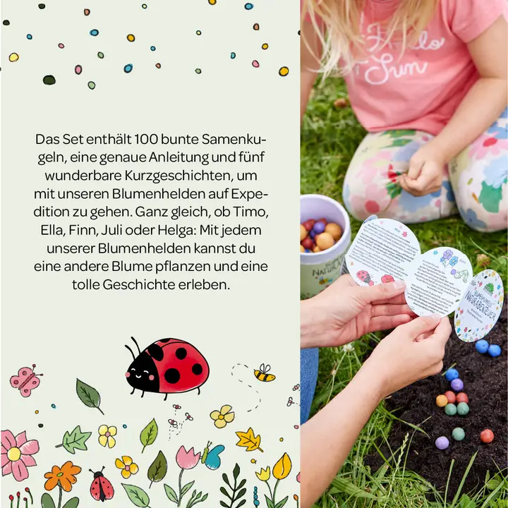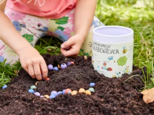Mit Die Stadtgärtner Blumenmurmeln (100er Dose) | Naturabenteuer startest du ein Naturabenteuer für Kinder und die ganze Familie. Jede Farbe steht für anderes Saatgut – mit Geschichten & Anleitung der Gartenhelden. Einfach in lockere Erde drücken, regelmässig giessen und staunen, was wächst.