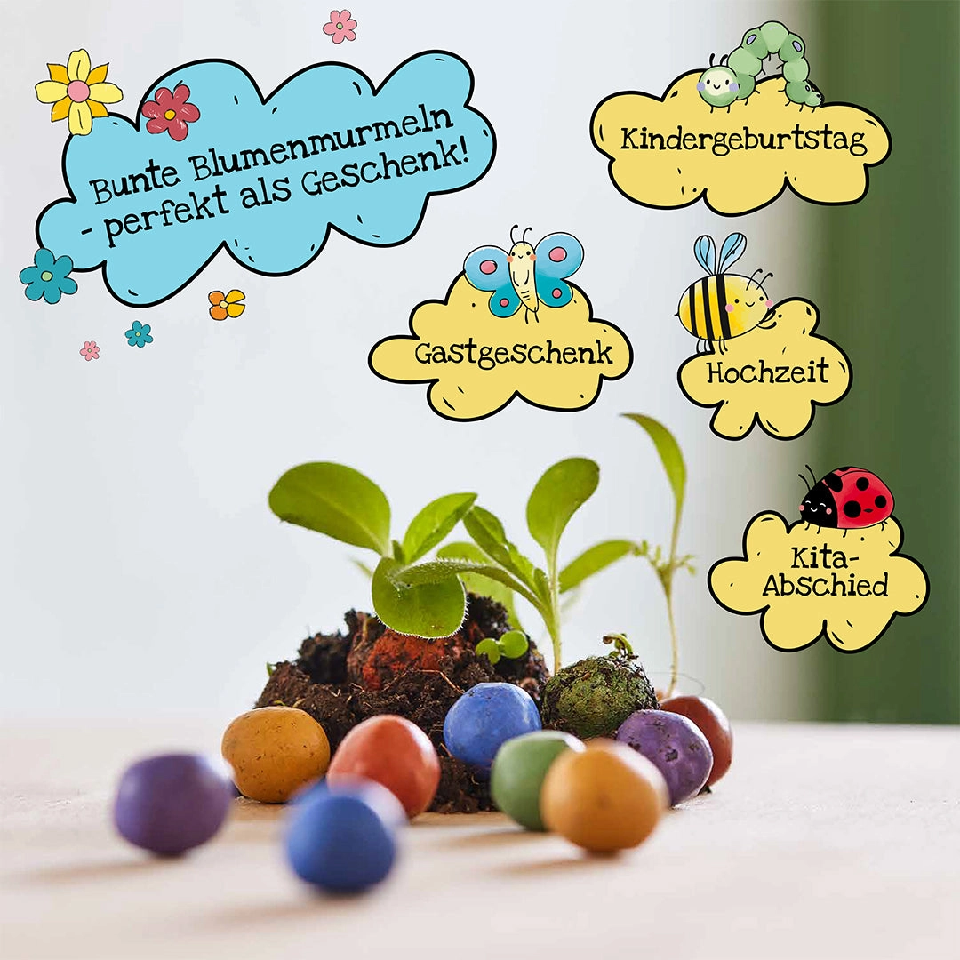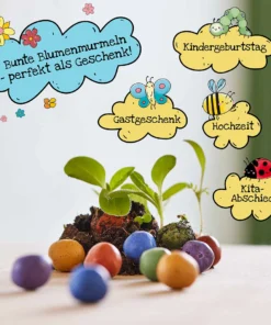 - Dose mit 100 Blumenmurmeln (bunte Saatkugeln)