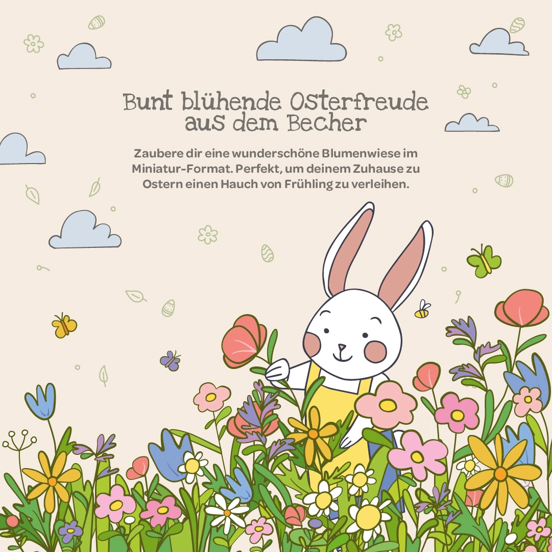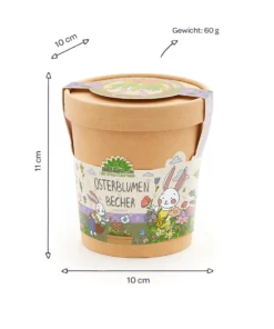 Dieses Anzuchtset verbindet Osterfreude mit Naturbewusstsein. Der umweltfreundliche Becher und die einfache Anzucht fördern spielerisch den Bezug zur Natur und schaffen gleichzeitig eine wertvolle Nahrungsquelle für Bienen und andere Insekten.