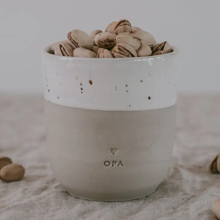Gönn Dir einen Moment voller Wärme: Der Eulenschnitt Becher Tasse aus Steingut (320ml) | Opa verbindet minimalistisches Design mit liebevoller Handarbeit. Mit seiner zarten Opa‑Blindprägung und natürlichen Farbnuancen verleiht er jedem Kaffee‑ oder Teeritual eine persönliche Note. Fassungsvermögen ca. 320 ml – für Opamomente jeden Tag.