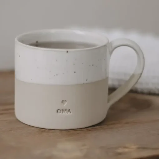 Eulenschnitt Tasse aus Steingut (280ml) | Oma – Handgemacht in Portugal