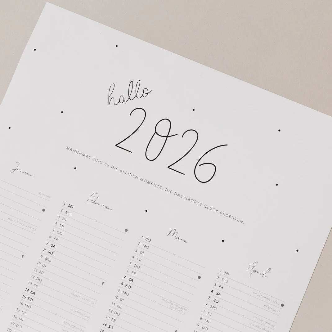 Der Eulenschnitt Wandkalender A2 | 2026 ist mehr als nur ein Jahresplaner – er ist ein stilvolles Organisationstalent für Dein Zuhause. Mit seinem klaren, reduzierten Design passt er perfekt in Küche, Büro oder Familienflur und bietet Dir auf einen Blick eine strukturierte Übersicht über das gesamte Jahr.