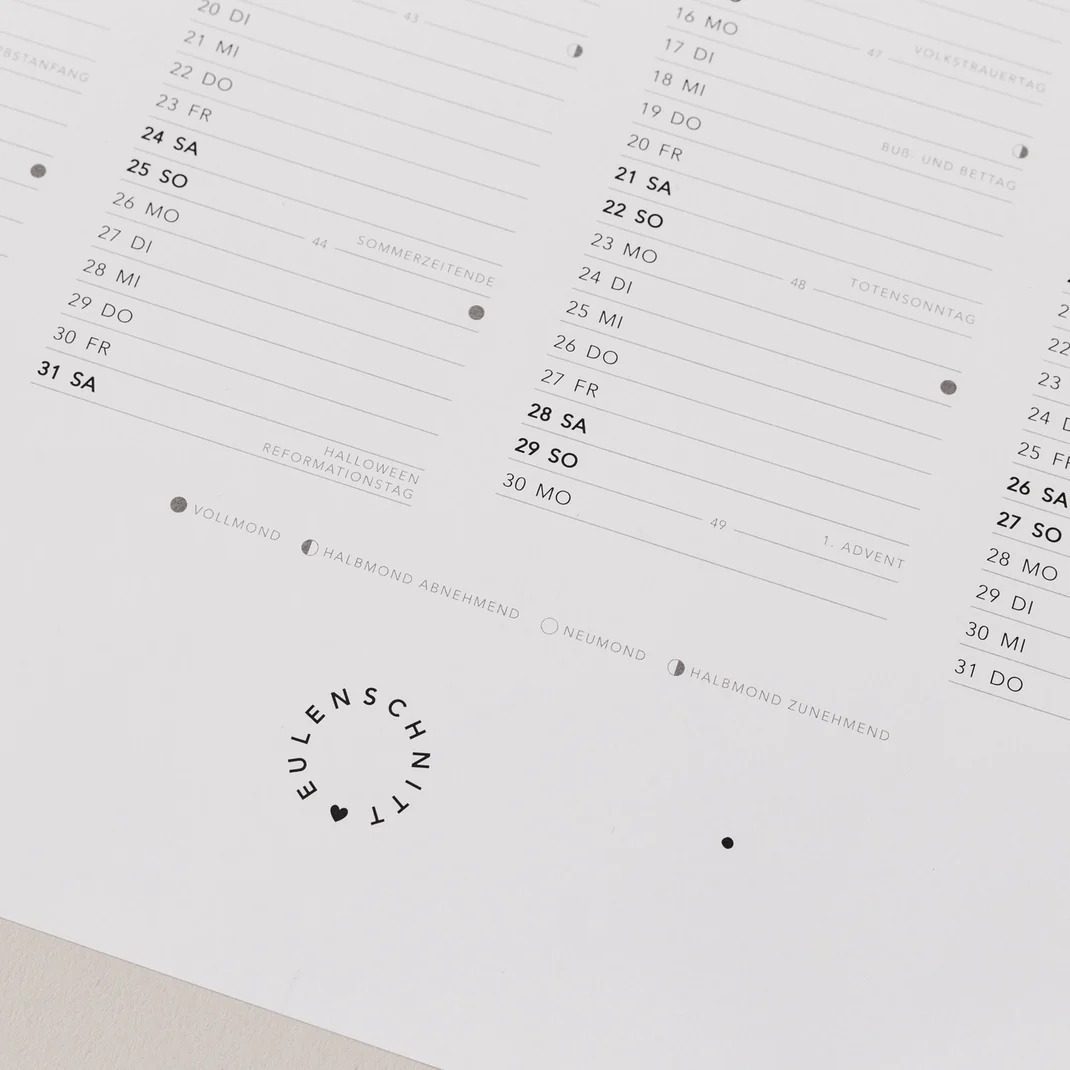 Eulenschnitt Wandkalender A2 | 2026 – Minimalistisch, übersichtlich & stilvoll durchs Jahr