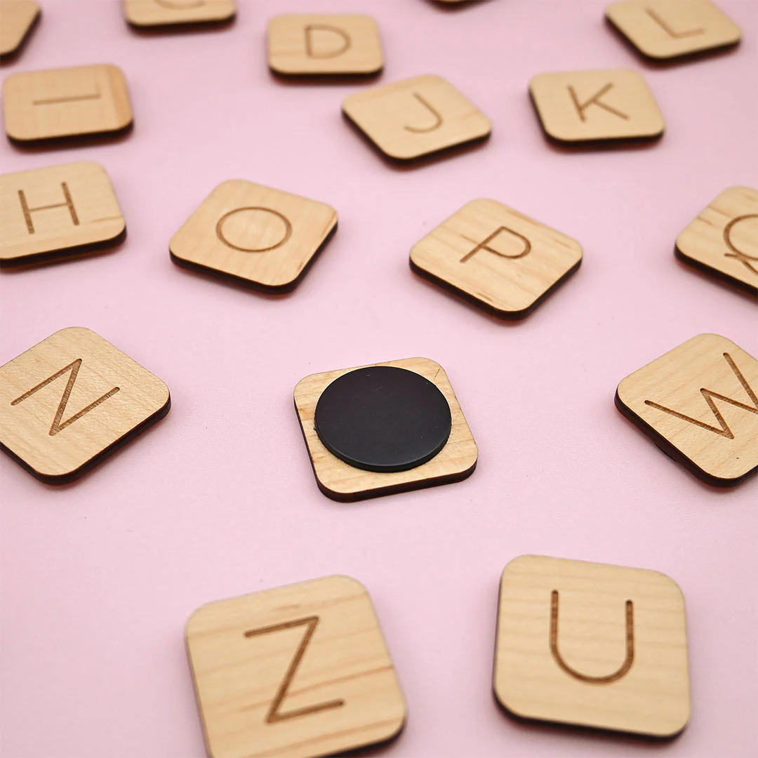 Natürlich schön und super praktisch: Das FERFLEX Holz Magnetspiel (26 STK) | Alphabet aus Ahornholz enthält 26 magnetische Grossbuchstaben im minimalistischen Design. Ideal zum Buchstabenlernen, für erste Wörter oder als stilvolle Deko auf Magnettafel, Magnettapete oder Kühlschrank. Inklusive Baumwollbeutel, hergestellt in Frankreich.