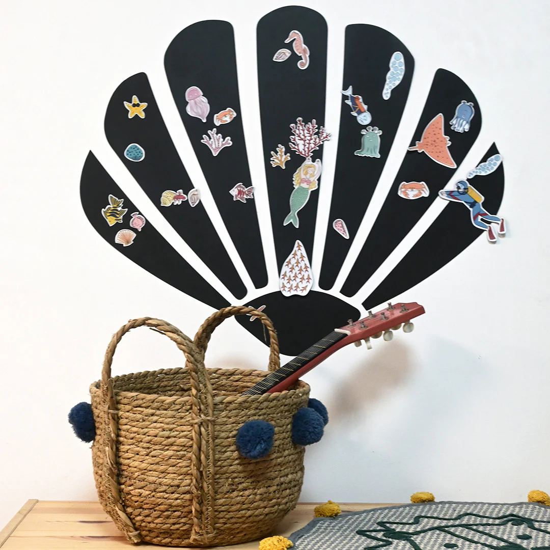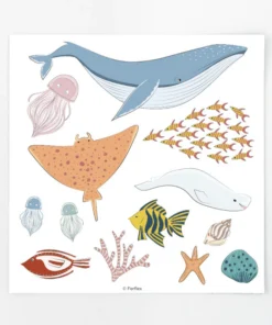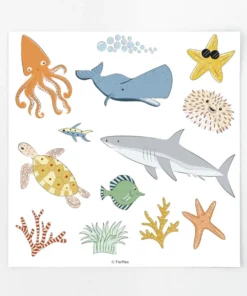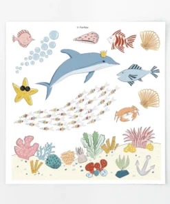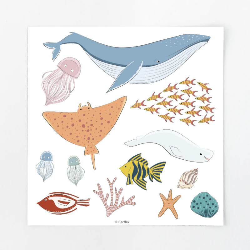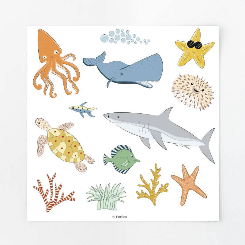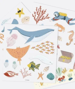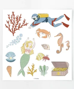 - Viele Motive: Fische, Krebstiere (Krabben, Einsiedlerkrebse), Korallen, Muscheln, Blasen, Taucher, Schatz, Meerjungfrau