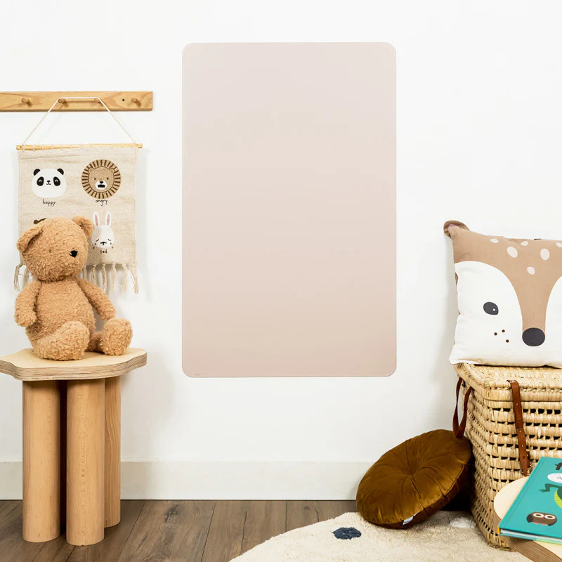 Diese FERFLEX Magnettafel rechteckig (selbstklebend) | Rosa Beige bringt frischen Wind ins Kinderzimmer! Ob zum Spielen, Gestalten oder Präsentieren – mit Ferflex® wird die Wand zur kreativen Fläche. Die Kombination aus flexibler Magnettafel und farbiger, abnehmbarer Beschichtung macht das Ganze besonders vielseitig. Einfach aufkleben, dekorieren und bei Bedarf neu gestalten – ganz ohne Kleberückstände.