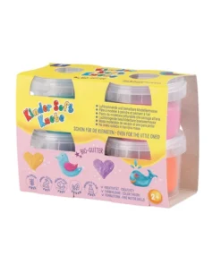 Diese weiche Feuchtmann Kinder Soft Knete Bio 4x80g (ab 2 J.) | Glitter bringt Kinderaugen zum Leuchten! Perfekt für erste Knetversuche, Bastelprojekte und alle gängigen Knetwerkzeuge. Trocknet an der Luft, kann bemalt werden und ist ideal für kleine Künstler ab 2 Jahren.