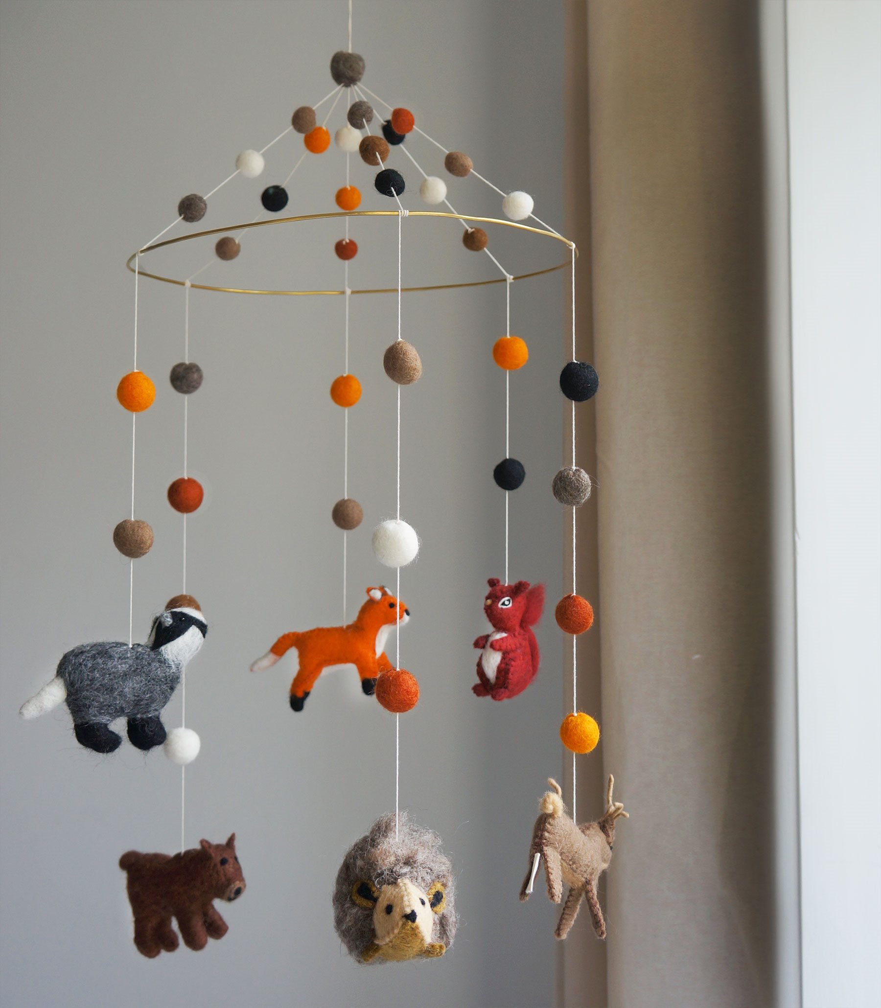 Wunderschönes und detailliertes Mobile aus Filz mit Gamcha Baby Mobile aus Filz | Wald gross wird in Nepal von Frauen hergestellt unter fairen Arbeitsbedingungen und fairer Entlöhnung. Ein wunderschönes und perfektes Geschenk zur Geburt, für eine Babyparty, einen Geburtstag oder als Mutterschaftsgeschenk.