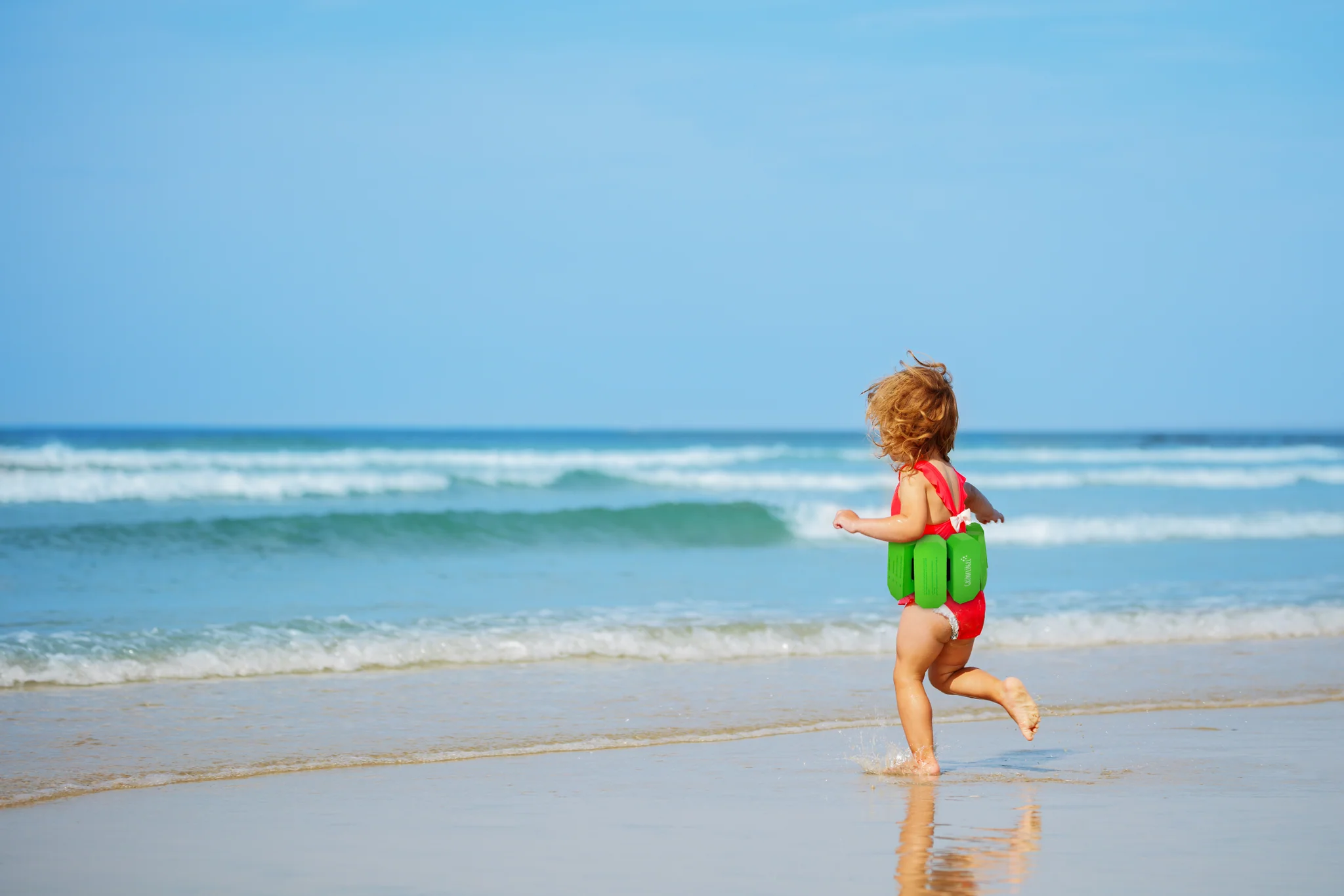 Auch mit Schwimmflügeln oder Schwimmgurt gilt: Kinder sollten im Wasser immer unter Aufsicht eines Erwachsenen sein.