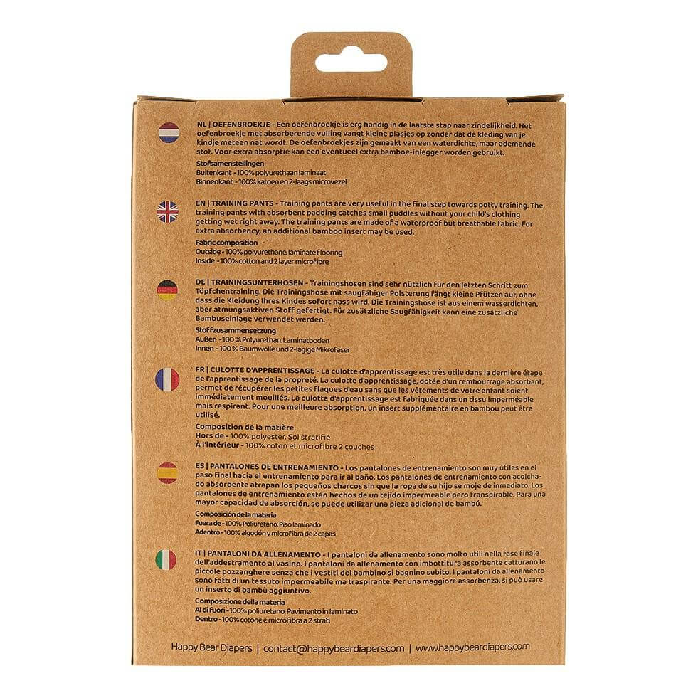 Ist dein Kind fast schon auf Toilettengang vorbereitet, kommt es aber dennoch regelmäßig zu Unfällen? Mit der HappyBear-Trainingshose mit fröhlichen Aufdrucken macht das Toilettentraining richtig Spaß. Denn wer will schon in so schöne Trainingshosen pinkeln?