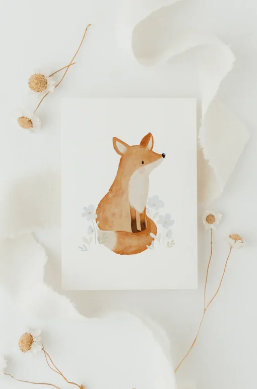 Liebevoll gestaltete Hej Hanni Postkarte | Fuchs mit Blumen in A6. Gedruckt auf hochwertigem Naturpapier 300g/m2.