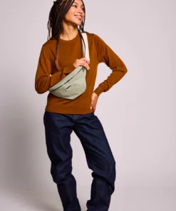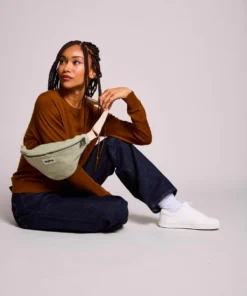 Die Hindbag Bauchtasche OLIVIA | lehmgrün die schnell unverzichtbar wird! Mit ihrer sehr dicken und festen Bio-Baumwolle trägt sie Ihre täglichen Essentials, ohne sich zu verformen. Dank der verstellbaren Schnalle, kannst du sie im Winter über einem dicken Mantel genauso gut tragen wie im Sommer über einem leichten T-Shirt.