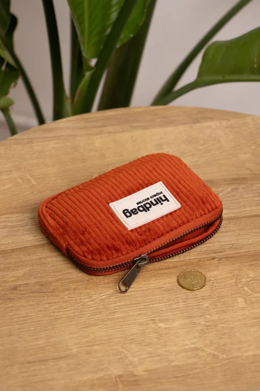 Hindbag Bio Cord Portemonnaie / Geldbörse LILI | ziegelrot ist die kleine Geldbörse mit Reißverschluss, die man überall hin mitnehmen kann. Dank der dicken Baumwolle ist es widerstandsfähig und schützt deinen Ausweis, deine Bankkarte, deine Münzen oder sogar deinen Schmuck.