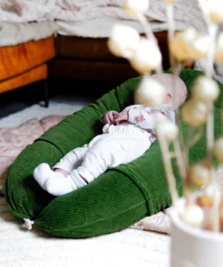 Der Hobea Baby Lagerungsbezug für Stillkissen Waffelmuster | cord moosgrün verwandelt dein Stillkissen im Handumdrehen in ein gemütliches Nestchen. Aus weicher Bio-Baumwolle gefertigt, bietet er Neugeborenen eine sichere Liegeposition. Waschbar bei 60 °C, praktisch und ergonomisch – ideal als Ergänzung zu deinem Stillkissen.