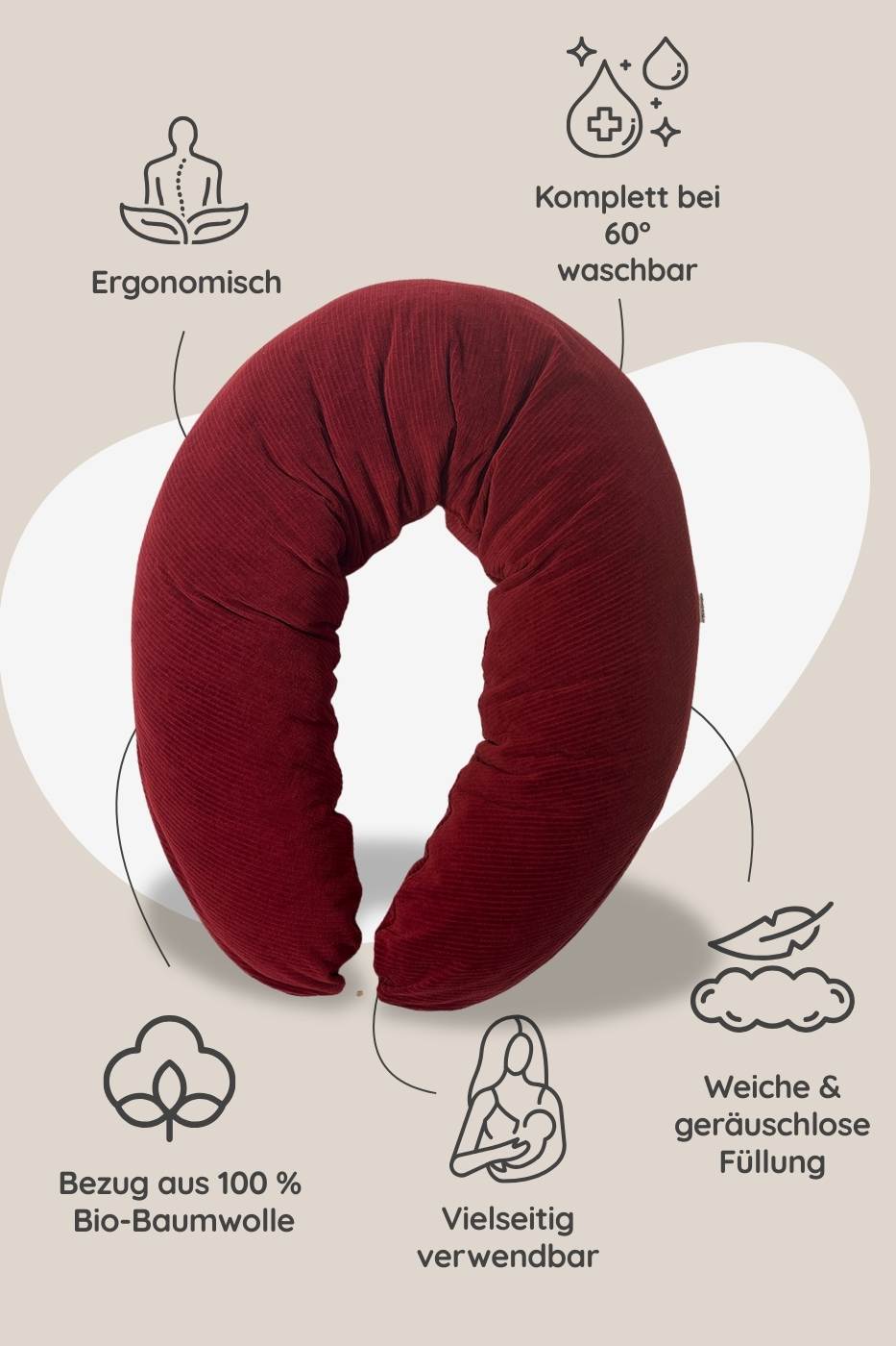 Hobea Stillkissen Cord | dunkelrot – Ergonomisches Stillkissen aus Bio-Baumwolle – 190 cm, vielseitig & geräuschlos