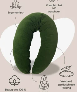 Hobea Stillkissen Cord | moos – Ergonomisches Stillkissen aus Bio-Baumwolle – 190 cm, vielseitig & geräuschlos