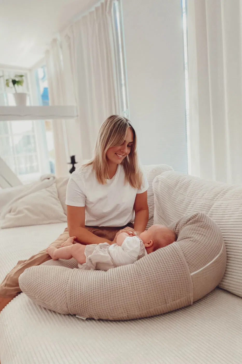 Bereits in der Schwangerschaft ist das Kissen ein beliebter Begleiter: Als Seitenschläferkissen sorgt es für erholsamere Nächte und entlastet Bauch, Rücken und Beine. Auch zum Fläschchen geben, als Rückenstütze, Kuschelkissen oder Lagerungshilfe für Dein Baby – dieses Kissen ist ein echtes Multitalent.