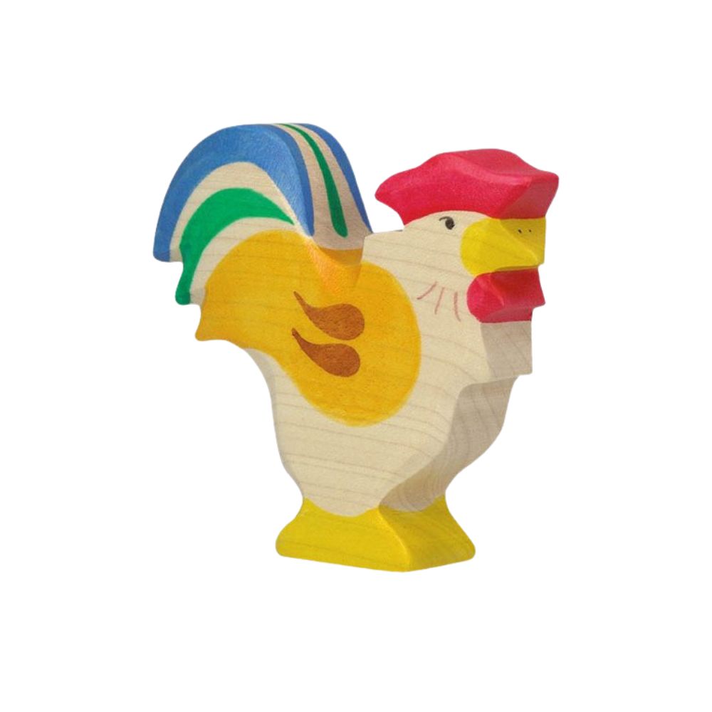 Die Holztiger Holztier | Hahn bringt natürliche Wärme ins Kinderzimmer. Aus massivem Ahorn- und Buchenholz handgearbeitet, sanft abgerundet und mit Farben auf Wasserbasis bemalt – perfekt für offenes, fantasievolles Spielen und langlebig für viele Abenteuer.