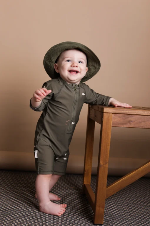 Sonnenschutz zum Reinschlüpfen: Der kidORCA UV Badeoverall (recycelt / UPF 50+) | Trout Kalamata schützt Dein Kind mit UPF 50+, kurzem Arm & Bein und hohem Kragen. Das recycelte, elastische Material ist schnelltrocknend, weich gefüttert und dank Front-Reissverschluss super einfach an- und auszuziehen.