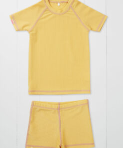 Diese ockerfarbenen Kinder Badeshorts sind unverzichtbar für Strandausflüge und Schwimmunterricht in diesem Sommer. Hergestellt aus einem gerippten Stoff mit weicher, hautfreundlicher Haptik. Der UPF50+-Schutz und die Flachnähte sorgen für zusätzlichen Komfort. Dieser Stoff ist auch umweltfreundlich, da er aus recyceltem Material hergestellt wird. Diese unisex Badehose in Shortie-Passform ist für alle Kinder mit Größen von 74/8 bis 134/140. Kombiniere sie mit unseren Badeshirts.