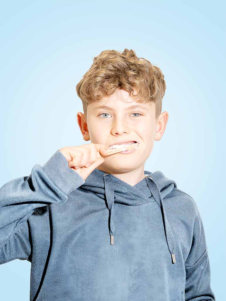 - Zähne wie gewohnt putzen (ideal auch bei empfindlichem Zahnfleisch).
