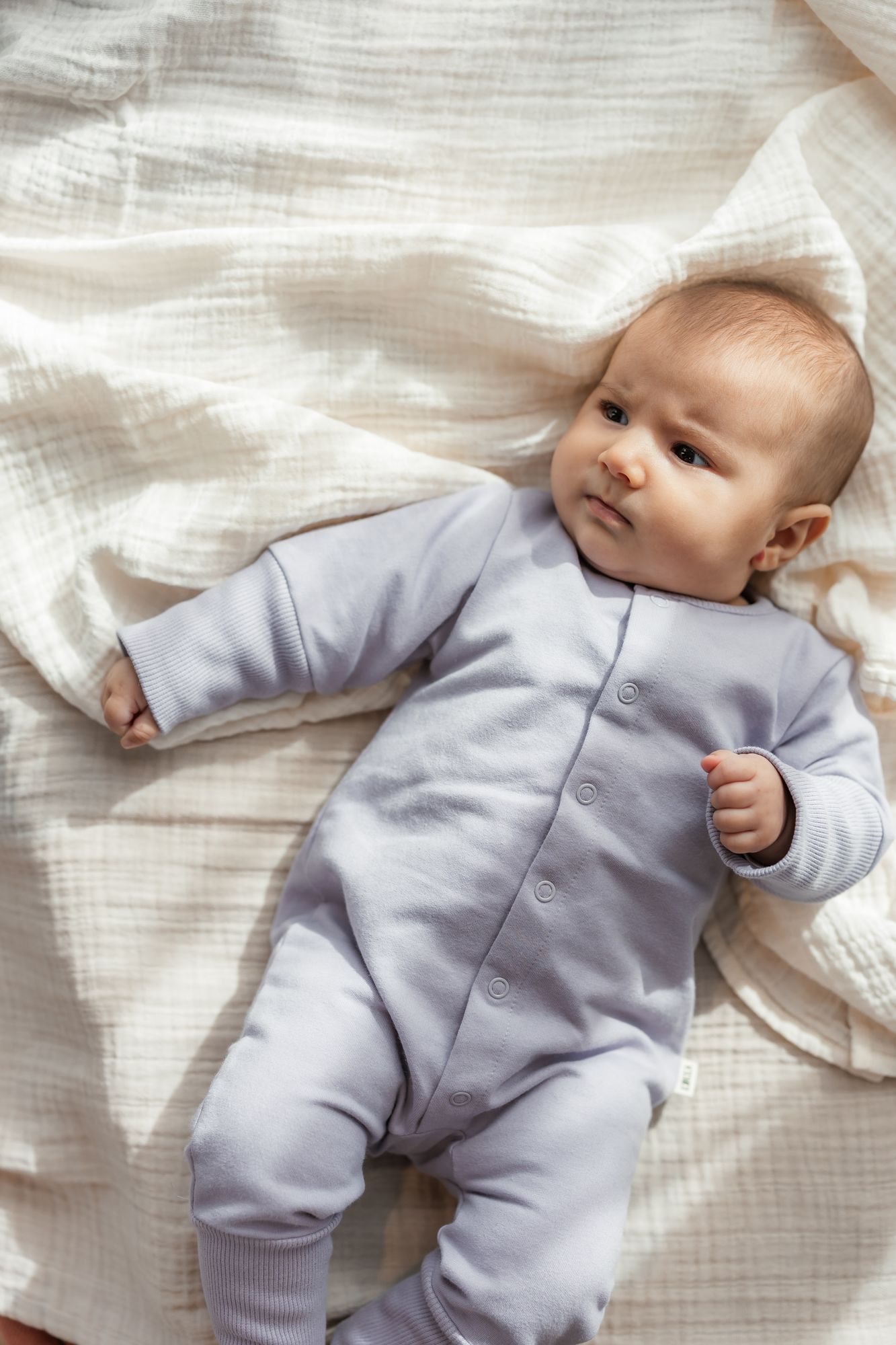 Der KUKKA Living Baby Sweat Strampler LOU | soft Lavender ist ein kuschelig weiches Lieblingsstück für die ersten Monate. Die hochwertige Bio-Baumwolle schmiegt sich sanft an die Haut, während praktische Druckknöpfe das An- und Ausziehen erleichtern – ideal für dein Baby.