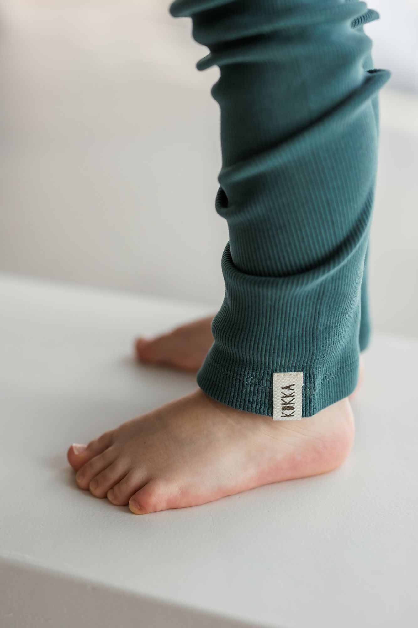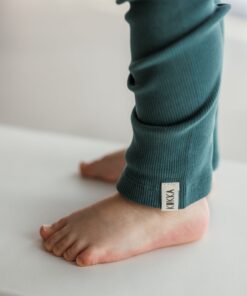 Die KUKKA Living Kinder Rib-Leggins NOA | dark green schmiegen sich dank elastischem Rib-Stoff sanft an den Körper an und bieten dir maximalen Komfort. Die weiche Bio-Baumwolle sorgt fuer ein angenehmes Tragegefuehl – perfekt fuer aktive Tage und vielseitige Alltagslooks.