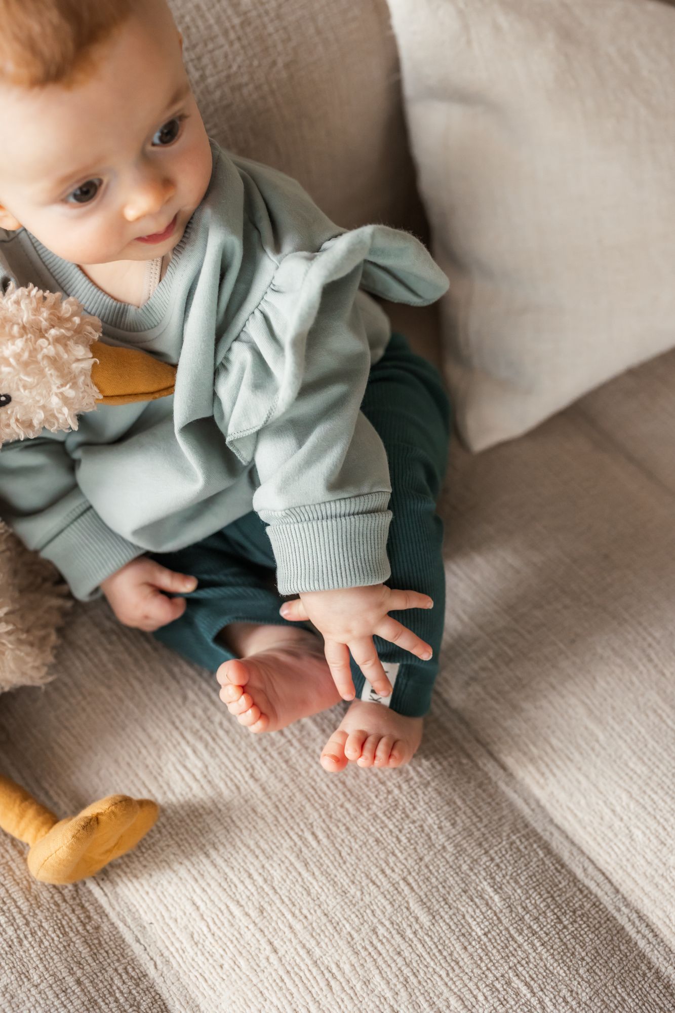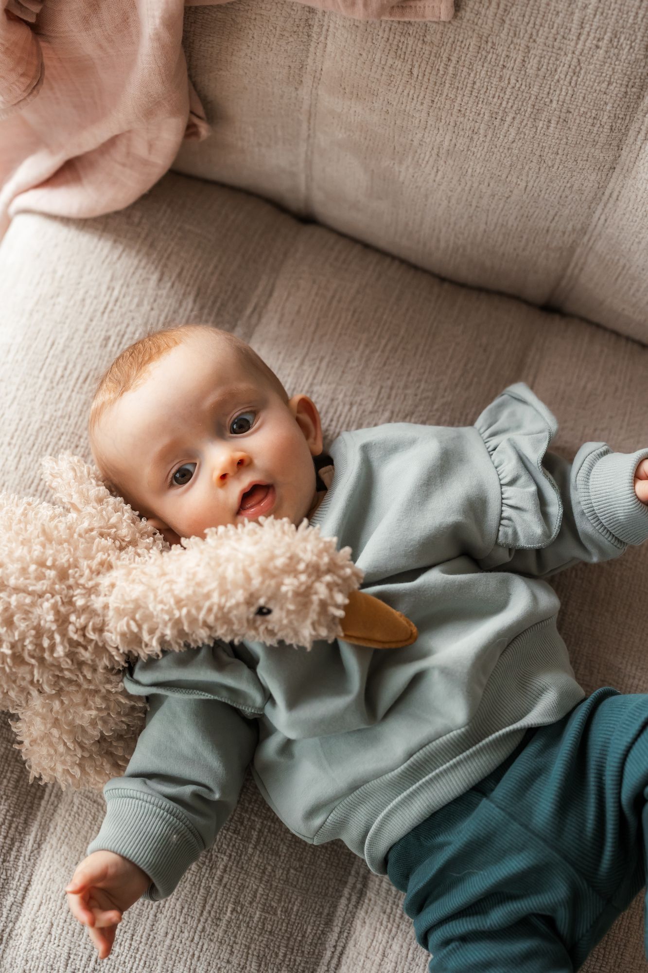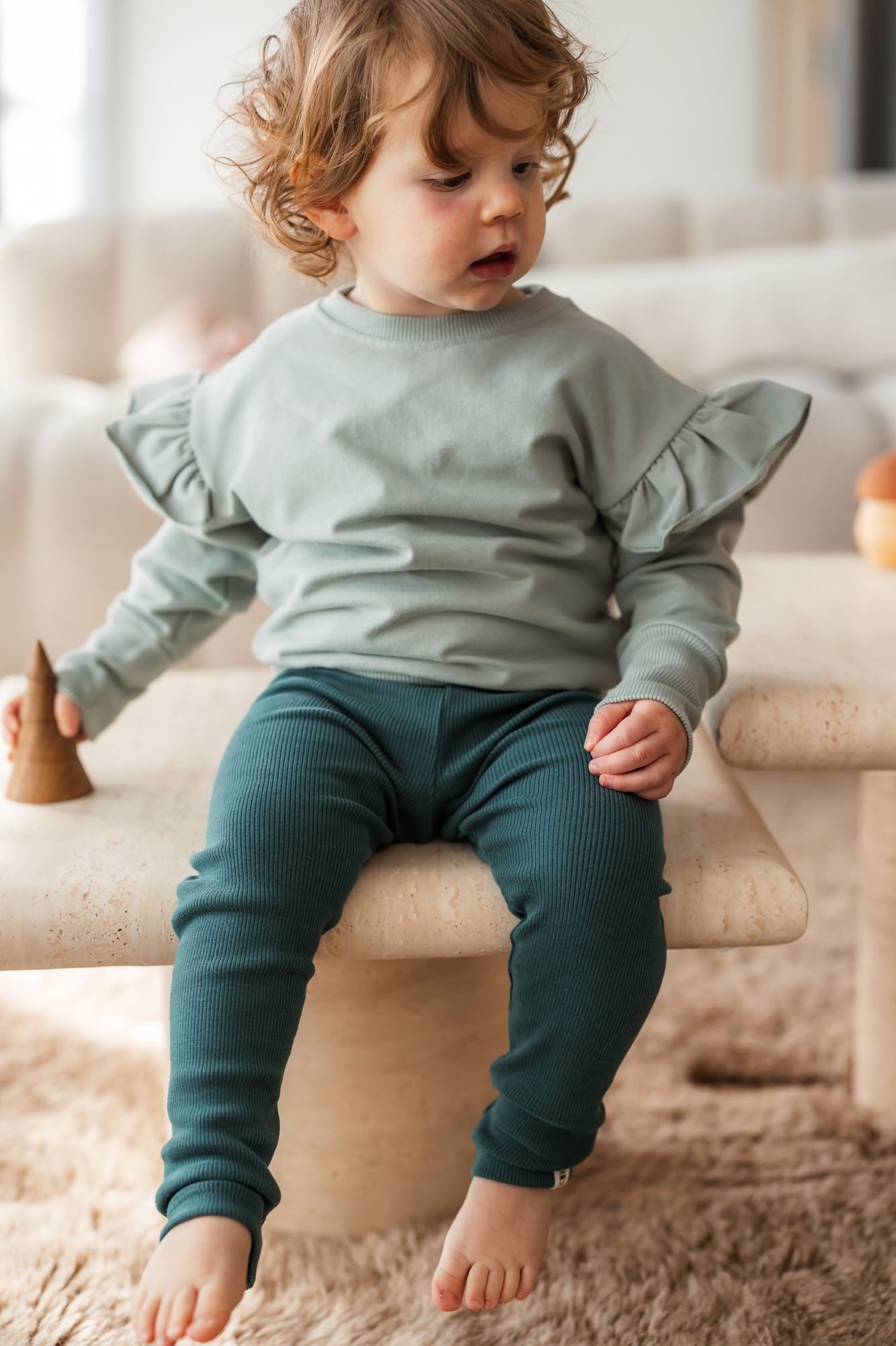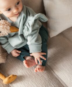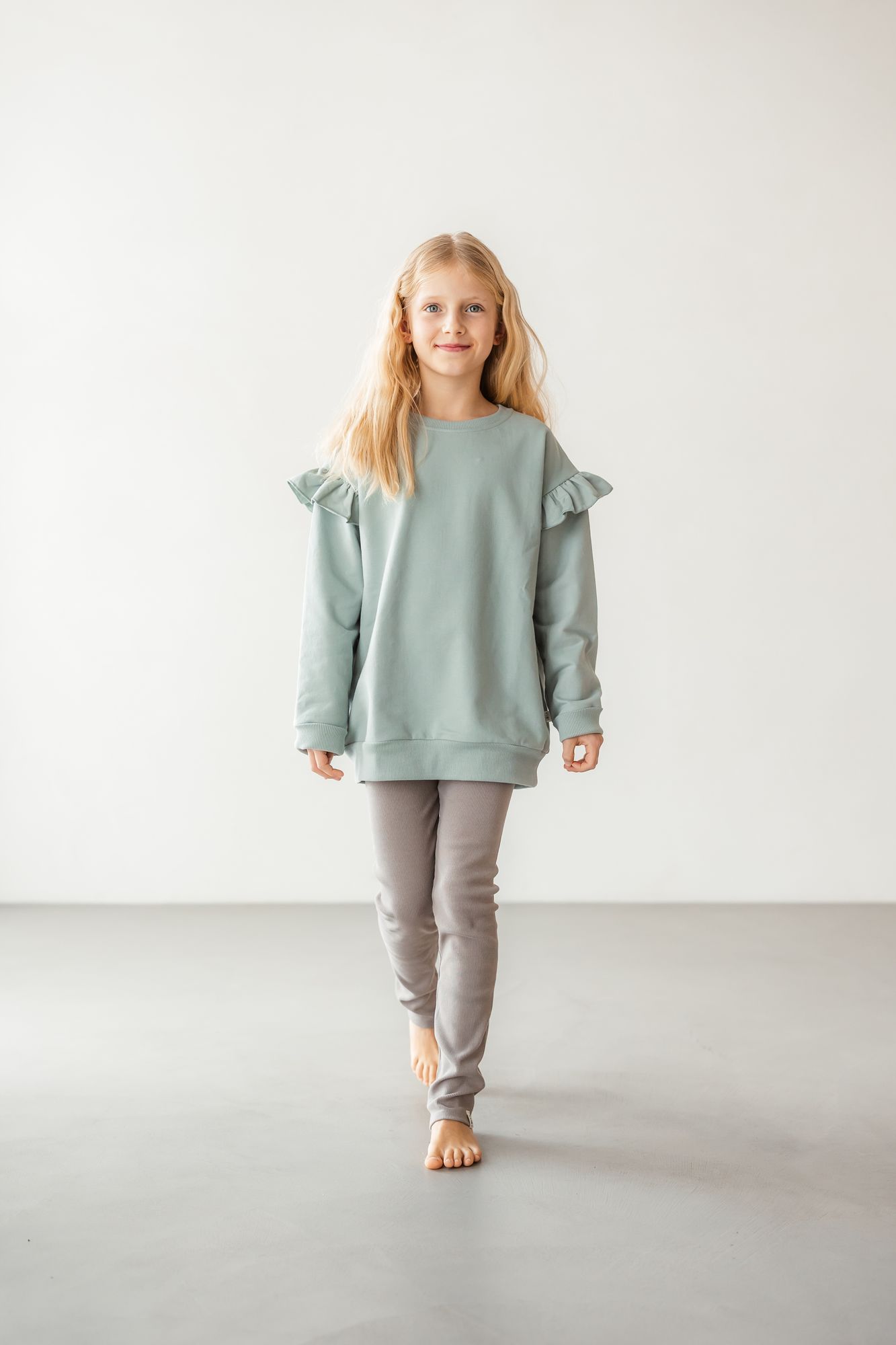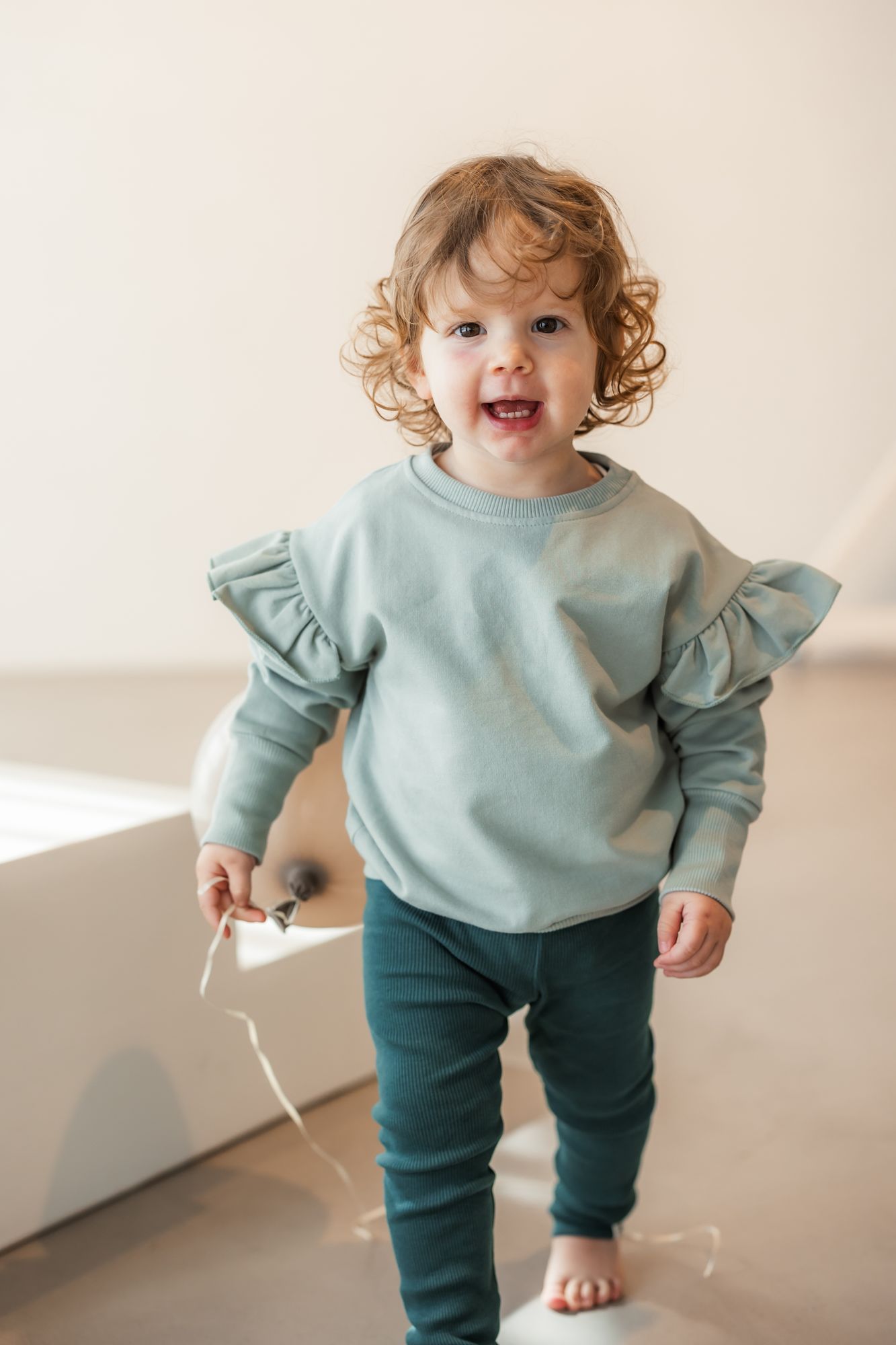 Das KUKKA Living Kinder Sweatshirt AVA | soft mint vereint Komfort und verspieltes Design. Zarte Rüschen an den Schultern machen es zu einem echten Hingucker, während die weiche Bio-Baumwolle für ein angenehmes Tragegefühl sorgt. Perfekt für den Alltag und gemütliche Stunden. In Portugal gefertigt, steht es für Qualität und Stil im Alltag.