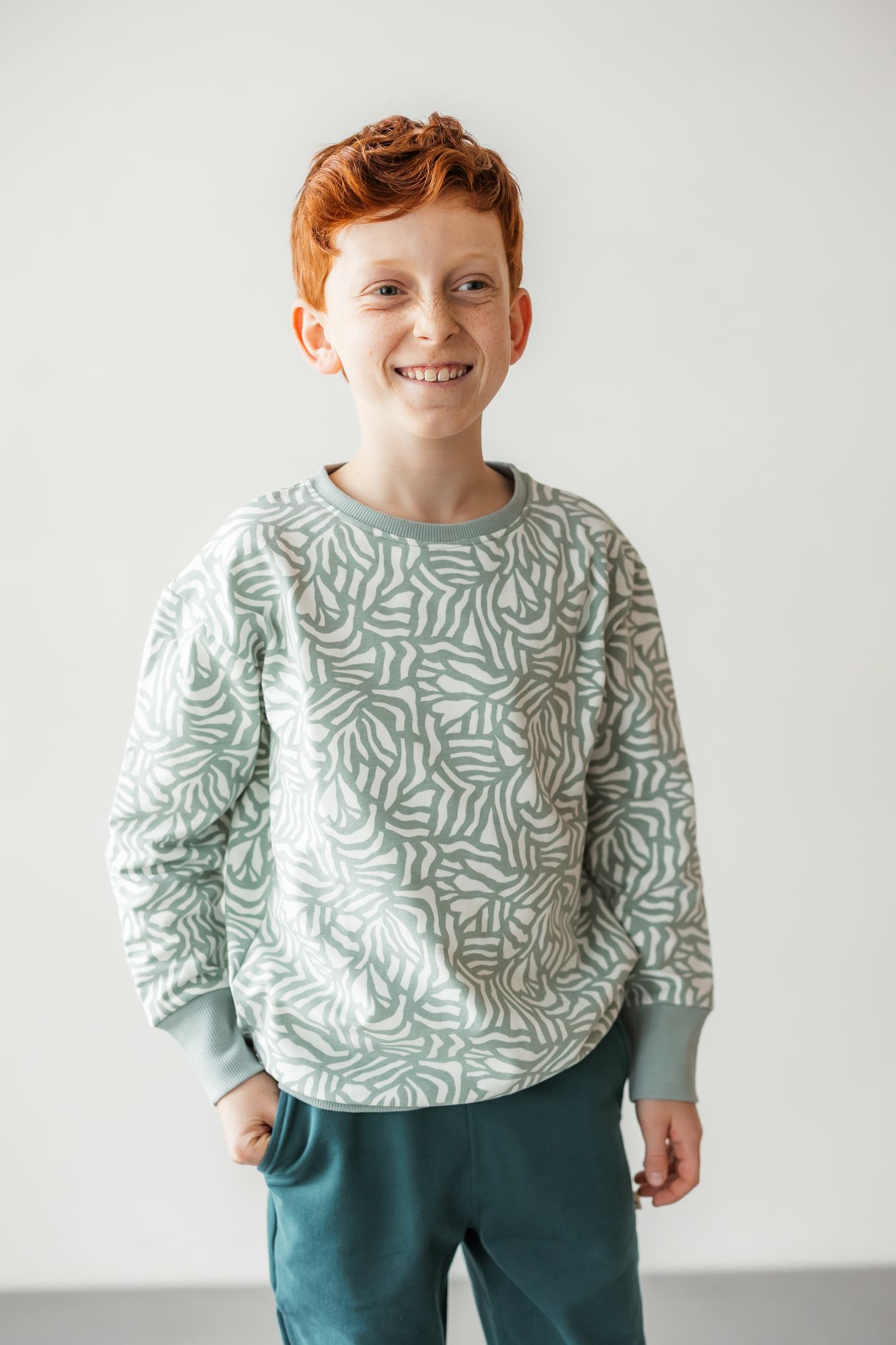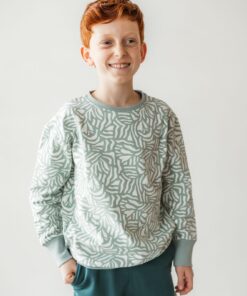 Das KUKKA Living Kinder Sweatshirt MIKA | soft mint begeistert mit seinem modernen Allover-Print und lockerem Oversize-Schnitt. Die weiche Bio-Baumwolle sorgt für ein angenehmes Tragegefühl, während das besondere Design jedes Outfit zum Hingucker macht – perfekt für stylische und bequeme Looks.