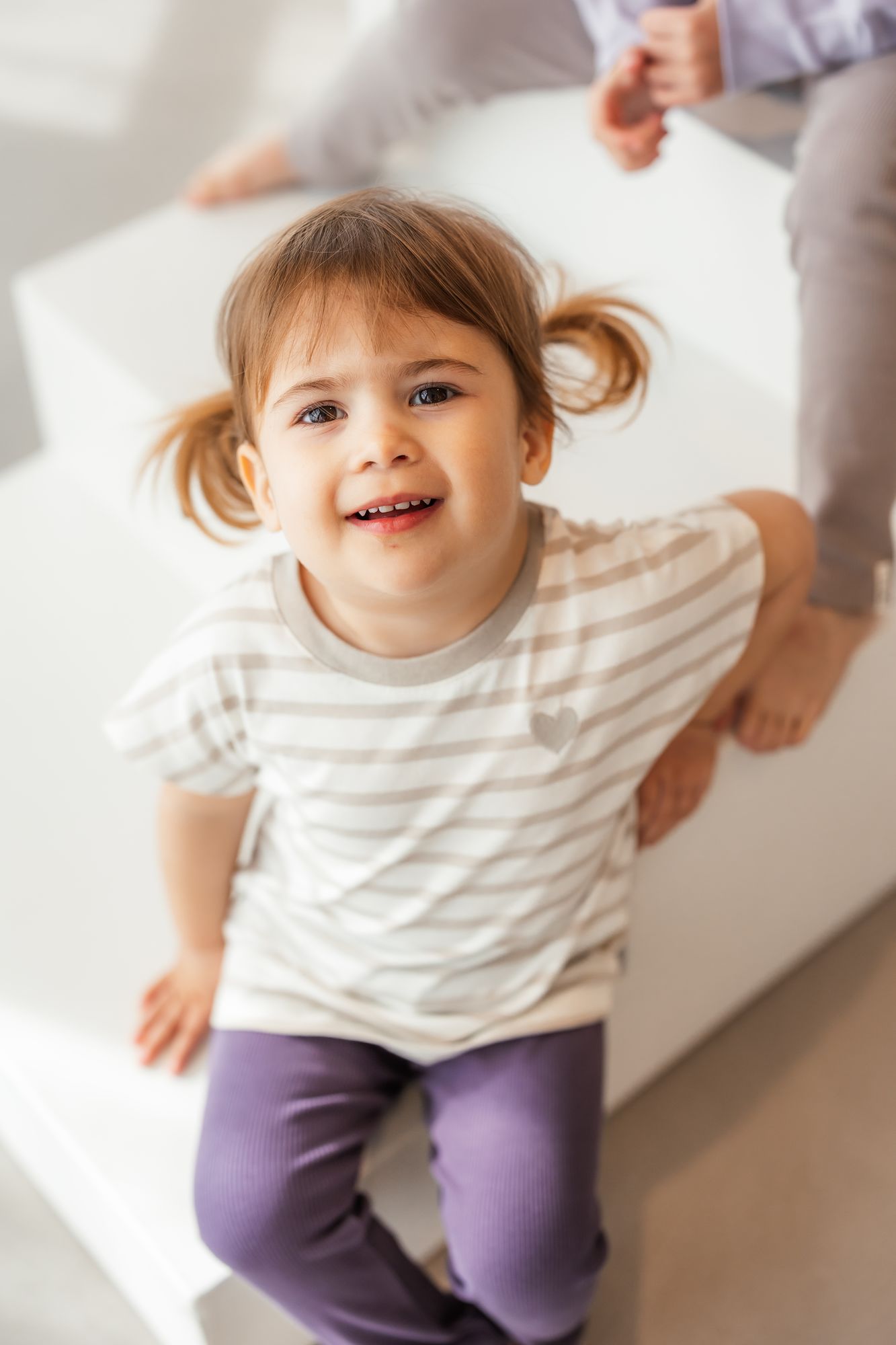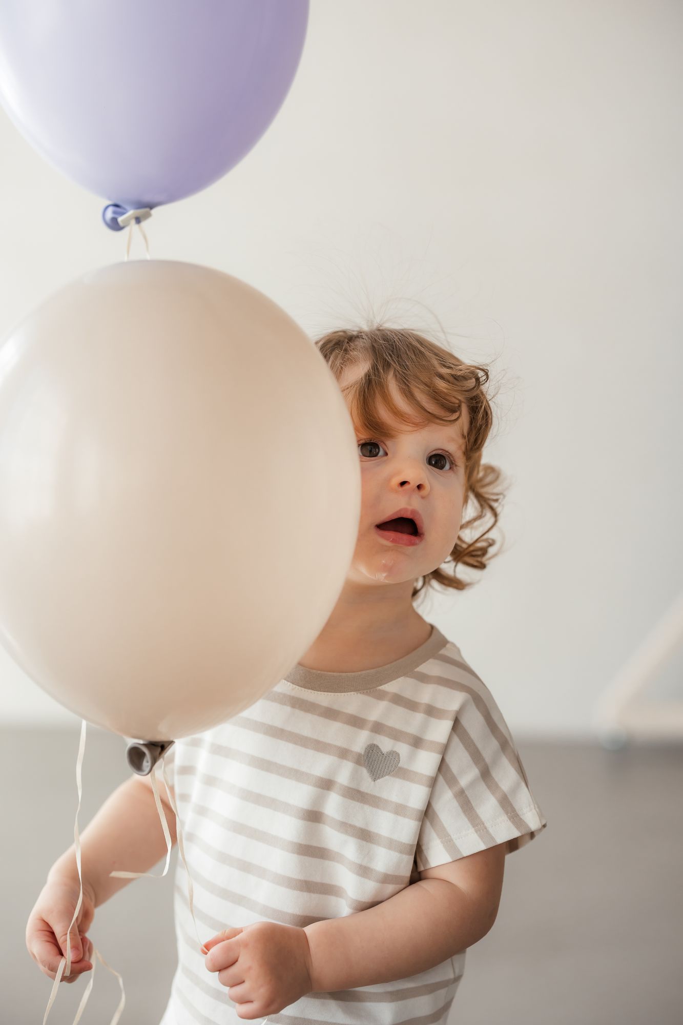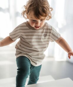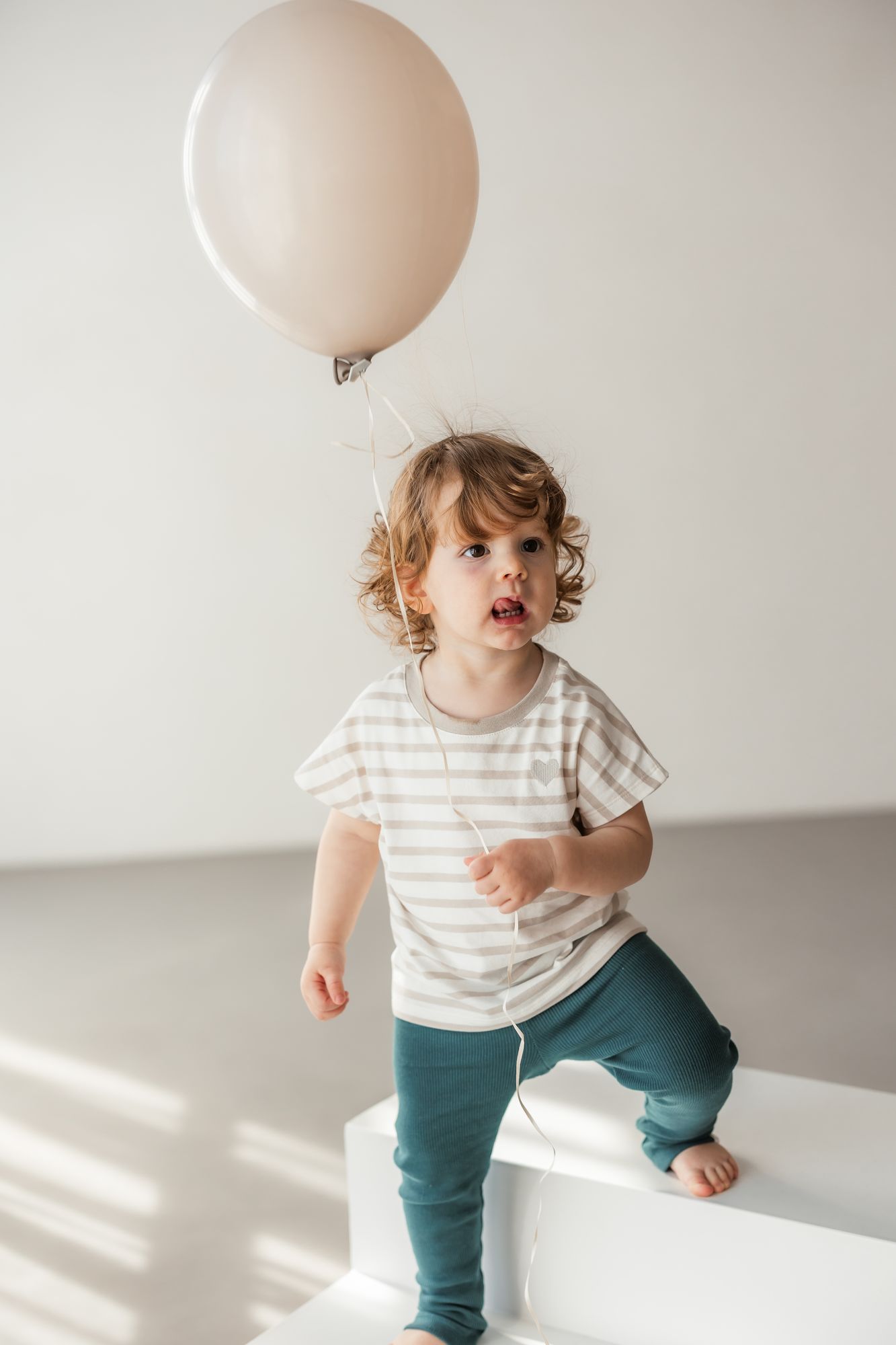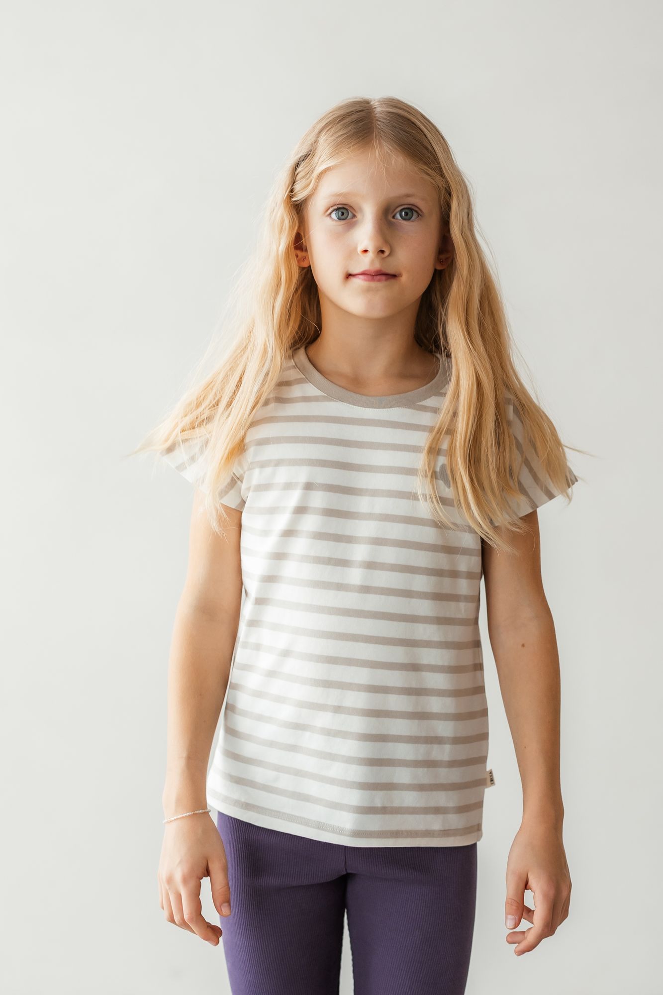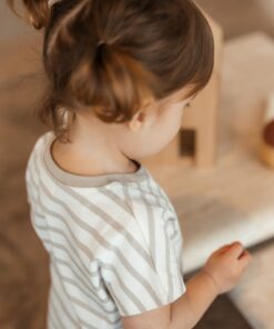 Das KUKKA Living Kinder T-Shirt JUNA | striped sand vereint weichen Bio-Jersey mit einem liebevollen Design. Der angenehme Stoff sorgt für hohen Tragekomfort, während das feine Streifenmuster und das kleine Herz-Detail dem Shirt eine besondere Note verleihen – ideal für jeden Tag.