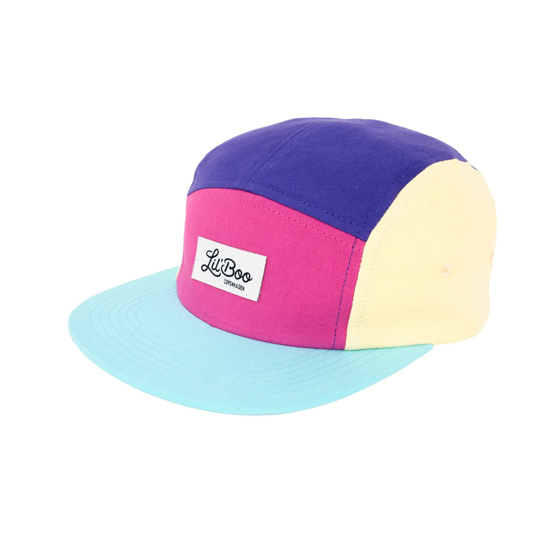 Die LIL‘ BOO 5 Panel CAP Block | Fizz aus 100 % Bio-Baumwolle hat eine grosse Krempe zum Schutz vor der Sonne.