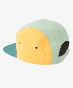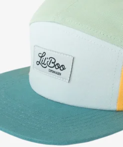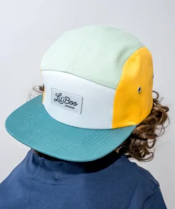 Die LIL‘ BOO 5 Panel CAP | Block YELLOW GREEN aus 100 % Bio-Baumwolle hat eine grosse Krempe zum Schutz vor der Sonne.