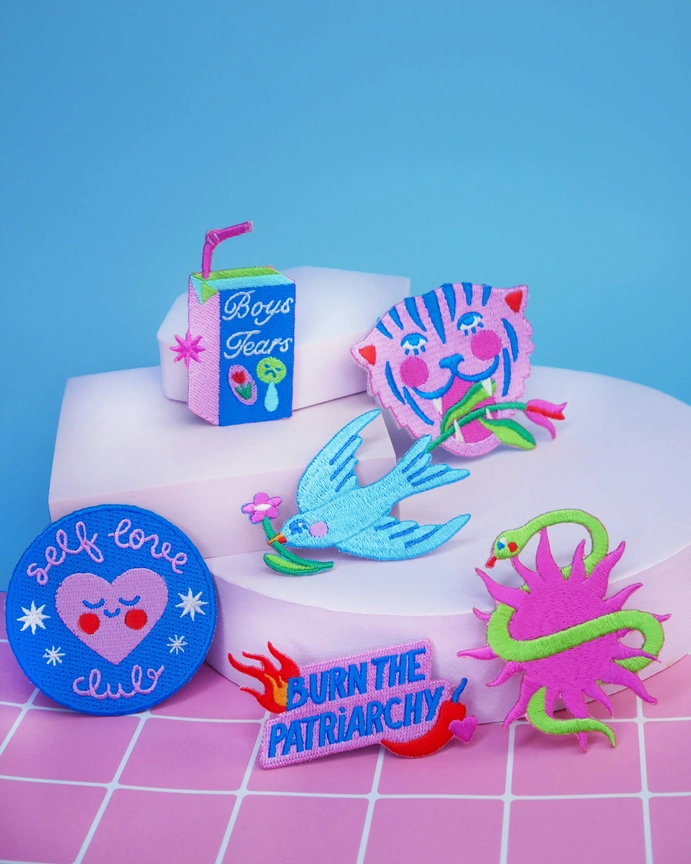 Burn the Patriarchy steht in extravaganten Buchstaben auf diesem Patch, um Ungleichheit zu bekämpfen und mehr zu vereinen. Also trage deinen stolz auf einem würzigen Look 🌶️